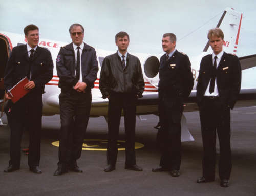 Einu sinni hittumst við feðgarnir meðan við vorum báðir í innanlandsfluginu, ég á Dornier, hann á F50.