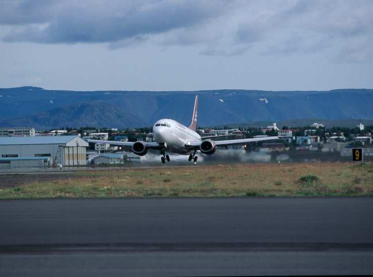 Áhöfn og flugtak TF-ELM, B737 hjá Islandsflugi.