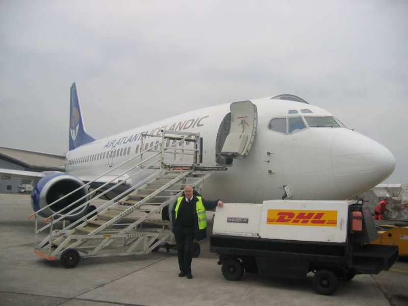Flugið fyrir DHL til Brussel var grundvöllur fyrir rekstri fyrstu B737 þotunnar hjá Íslandsflugi. Myndin var tekin í einu af síðustu flugunum þangað eftir sameininguna við Atlanta. Það kom á óvart að þessi rekstur var lagður af og vélarnar seldar.