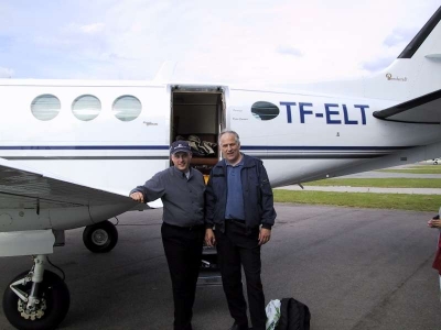 Meðan ég starfaði hjá Íslandsflugi flaug ég oft fyrir þá Kennedybræður frá Akureyri en þeir voru stærstu hluthafar Íslandsflugs og áttu KingAir flugvél TF-ELT. Myndirnar eru úr ferð til Danmerkur og Sæmundur sonur minn flaug með.