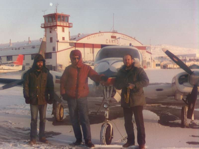 Margar góðar ferðir fór ég á ESS-inu, bæði innanlands og utan. Myndin hér er af okkur Árna Yngvarssyni og Tóta í Frobisher að gera við C402 vél frá Arnarflugi sem hafði bilað þar.