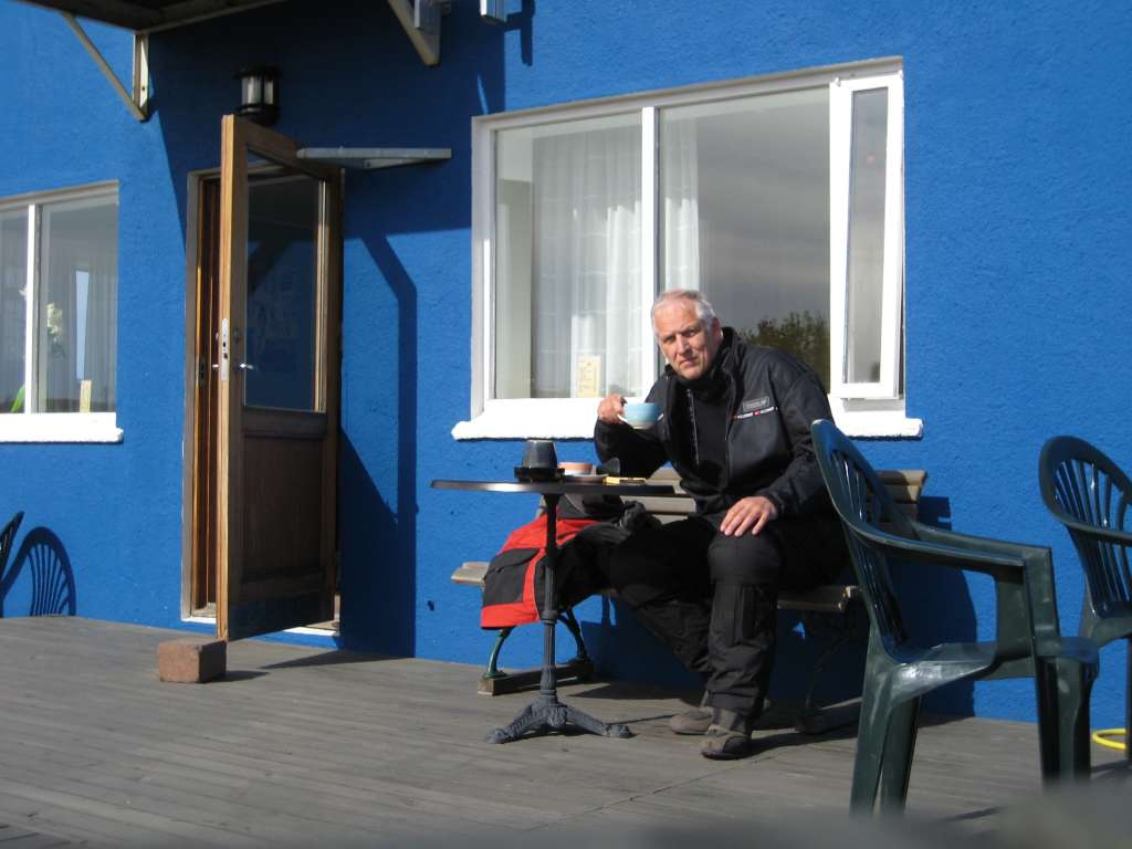 Móttökurnar á Húsavík voru á heimsmælikvarða. Eftir sundsprett og heitan pott var grillveisla hjá þeim hjónum. Góðar veigar á borðum úti á svölum í frægu logni staðarins og ekkert til sparað. Mývargurinn hafði litað mig og hjólið gulum drullulit og leifar af stærri skordýrum settu sinn svip á útlitið. Nú varð að taka fram skrúbbinn til að afmá vegsummerkin, því hér hafði átt sér stað fjöldamorð. Með sápu og heitu vatni tókst að ná réttum lit á hjólið, og svo var aðgætt með olíu og dekk fyrir langan akstur morgundagsins. Eftir miklar umræður um heimsmálin, innbyrt með skoskum og frönskum mjöð, var kominn tími til að hvílast. Ég man að ég heyrði ljúfan þrastasöng í garðinum, en svo svaf ég yfir mig.