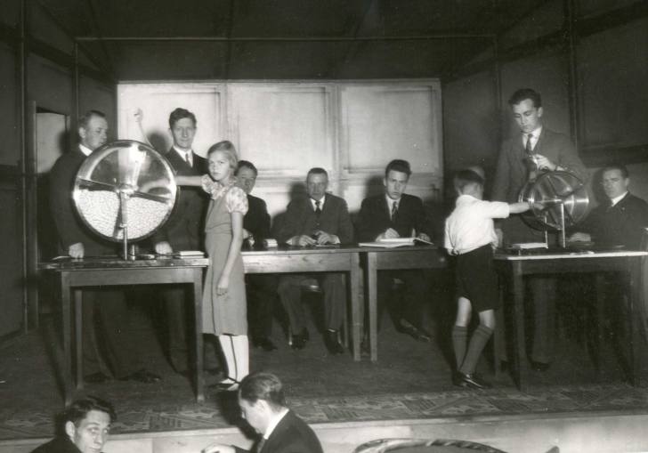 Fyrsti útdráttur í Happdrætti Háskólans eins og hann var framkvæmdur handvirkt.
