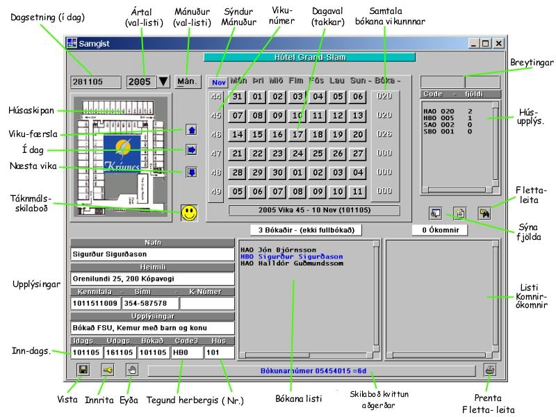 Hugbúnaður til bókunar og afgreislu hjá gistihúsum.Flugfélög.